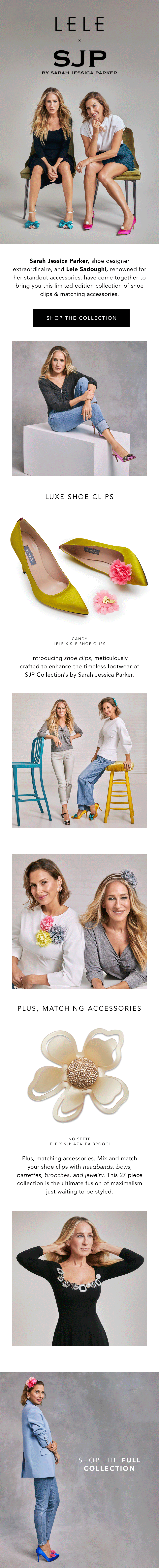 Shoe designer extraordinaire and pop culture icon Sarah Jessica Parker teams up with standout accessory designer Lele Sadoughi to create a limited-edition collection that is every maximalist’s dream.